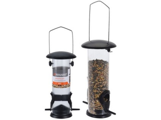 Krmítko pro ptáky pr. 10 x 23 cm, PH. průměr: 10 cm výška: 23 cm materiál: plast Krmítko snadno zavěsíte na balkoně, větvi..lených tvorečků. Navíc vespod krmítka je umístěna kovová tyčka, na kterou můžete zavěsit lojovou kouli nebo lůj ve válečku.