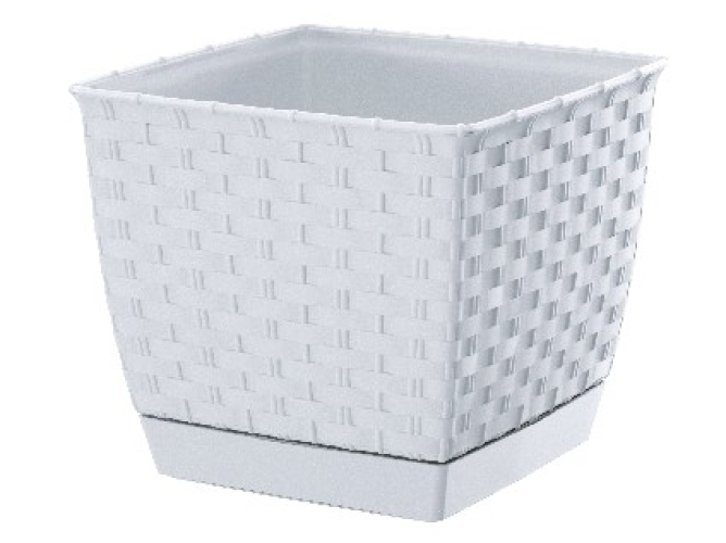 rozměry: 25 x 25 x 22 cm barva: bílá s miskou Plastový květináč RATOLLA SQUARE, který věrně imituje ratanový výplet, je vhodný do interiéru, na terasy i balkóny.