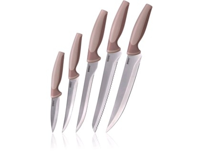 Nože TRINITY CULINARIA HN, sada 5díl. sada obsahuje: - praktický nůž 18,5 a 23,5 cm - porcovací nůž 32 cm - vykošťovací ..é nože patří mezi nepostradatelné pomocníky v každé kuchyni. Výběr vhodného nože nám usnadní krájení či porcování potravin.