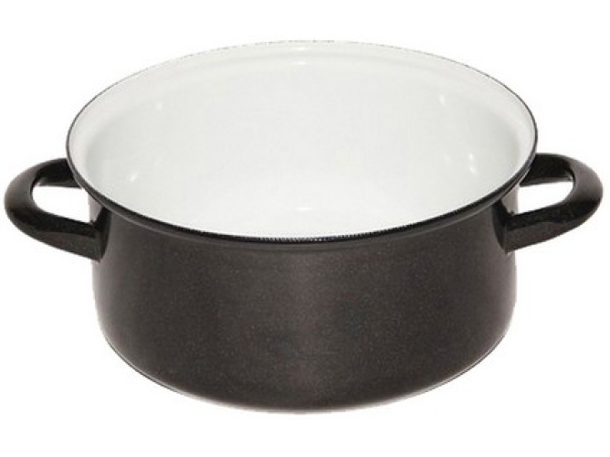 objem: 2,1 l průměr: 18 cm výška: 9 cm síla plechu: 1-1,2 mm vnitřní barva: bílý granit vnější barva: černá s bílou pihou Smaltovaný rendlík BELIS STANDARD je nižší hrnec pro ohřívání vody, mléka nebo vaření vajec.