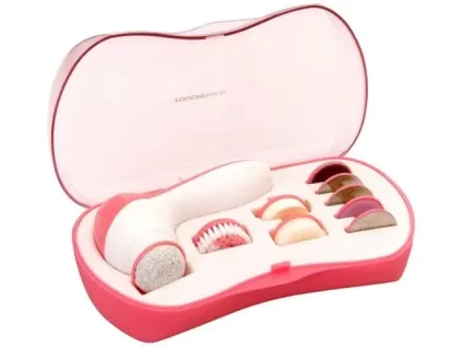 PROTECO sada pro péči o pleť 9v1 představuje praktickou multifunkční sadu, která Vám pomůže při péči o Váš obličej, ruce i chodidla. Sada obsahuje 9 variabilních nástavců k ošetření Vašeho těla. Pro kvalitní ošetření pleti obsahuje sada tyto nástavce: kartáček na čištění nebo peeling, pěnovou houbičku, latexovou houbičku a jemný dočišťovací nástavec. Pro ošetření rukou a nohou slouží: přírodní leštící kámen, hrubý, středně hrubý a jemný kovový nástavec.PROTECO sada pro péči o pleť 9v1 je napájena 2 AAA bateriemi 1,5 V, které nejsou součástí balení.