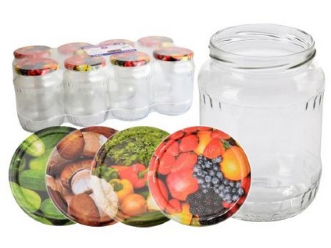 objem: 720 ml průměr hrdla: 82 mm s víčkem, mix dekorů 8 ks Zavařovací sklenice TWIST 82, 720 ml, s víčkem mix dekorů, se užívá pro konzervaci menšího množství potravin.