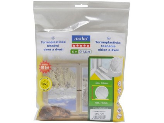 Těsnění oken a dveří termoplastické EVO 7,5 mm TRA ( 6,5 m ) MAKO Rozměry: 7,5 mm 6,5 m Barva: transparentní Těsnění oken a dveří pro spáry o šíři 1,5 až 7,5 mm. Životnost těsnění je až 15 let, odolné vůči UV záření, povětrnosti a stárnutí.